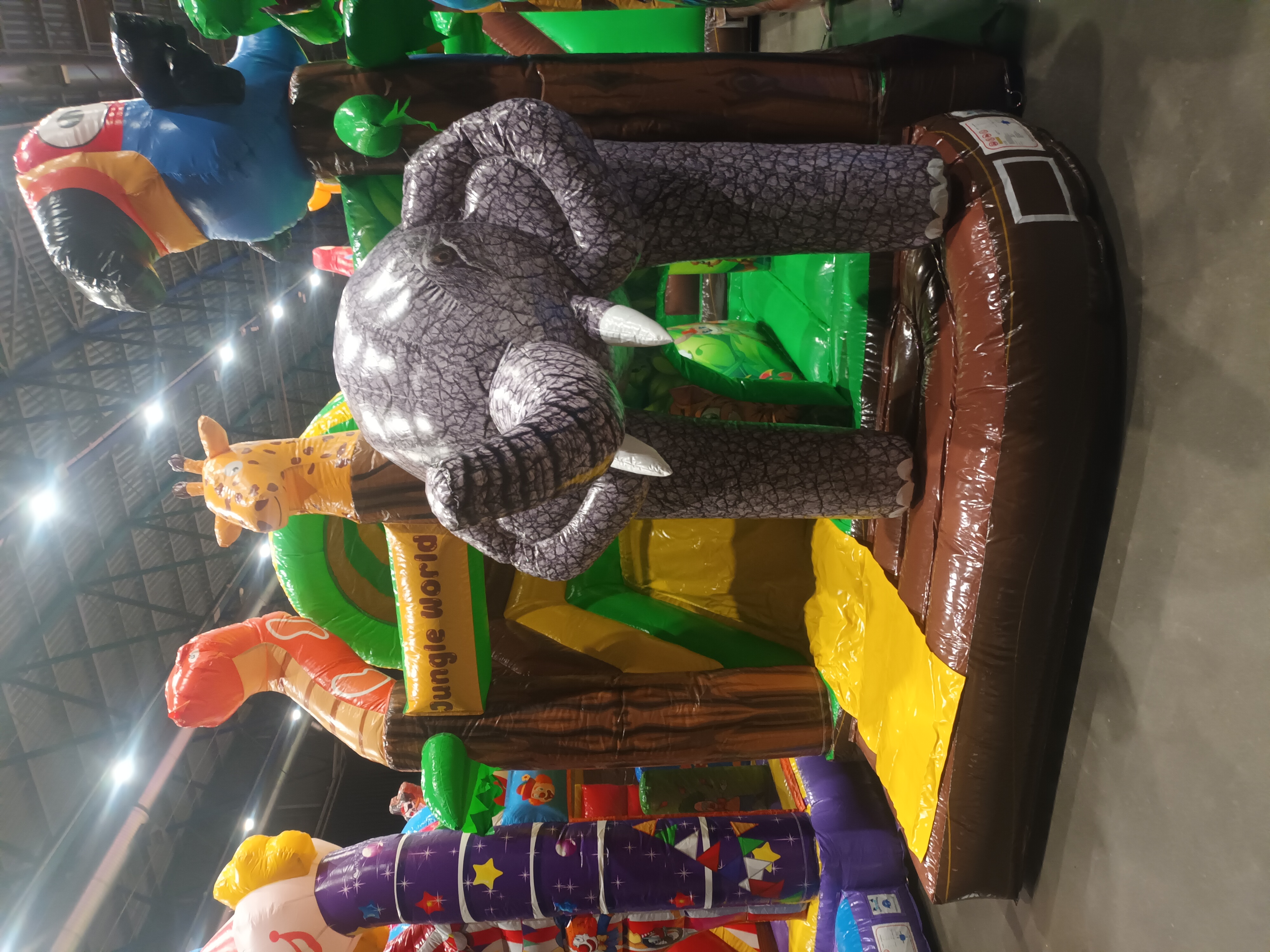 Ga op avontuur in de jungle. Dit kleurrijke jungle springkasteel combineert springplezier met extra actie op de glijbaan. Ideaal voor jonge avonturiers die houden van klimmen, springen en glijden.